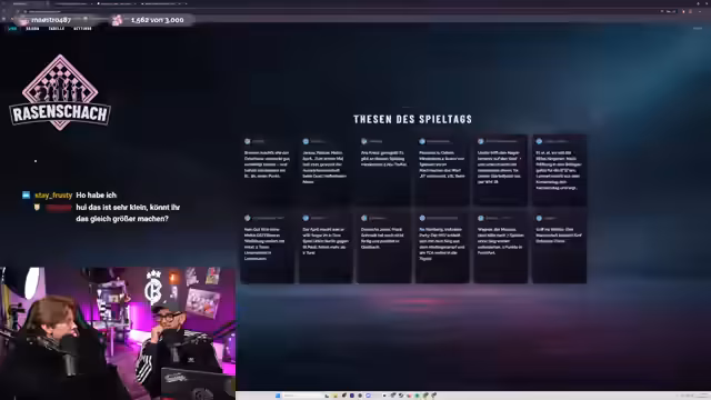01:45:50Nach Abschluss des Rasenschach-Spiels stellt der Streamer ein neues Tool vor, das ihm die Thesen-Eingabe erheblich erleichtert. Vorher musste er jede These einzeln per Screenshot auf Instagram erfassen und auf sein MacBook übertragen. Das neue System ermöglicht das direkte Einsenden der Thesen über einen Link, was die Prozessabläufe stark optimiert und eine Zeichenbegrenzung aufhebt. Der Streamer lobt die Benutzeroberfläche als benutzerfreundlich und optisch ansprechend und vermerkt, dass dies die Erkennbarkeit im Stream verbessert. Die Implementierung dieses Tools wird als großer Vorteil für die zukünftige Gestaltung von Streams angesehen und als Schritt nach vorne gewertet.