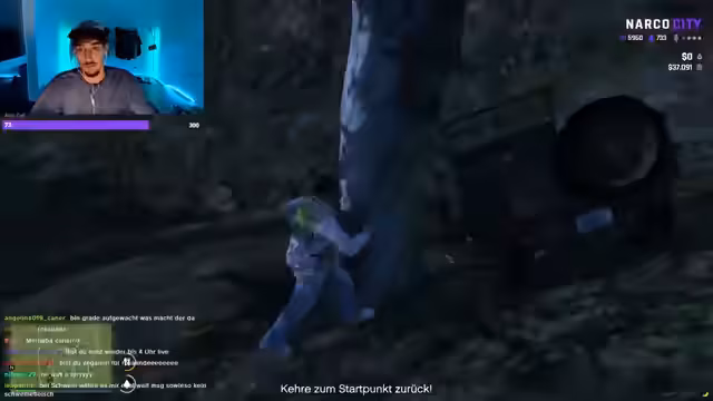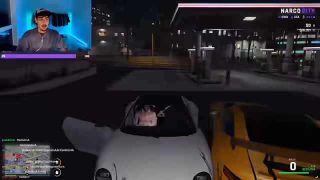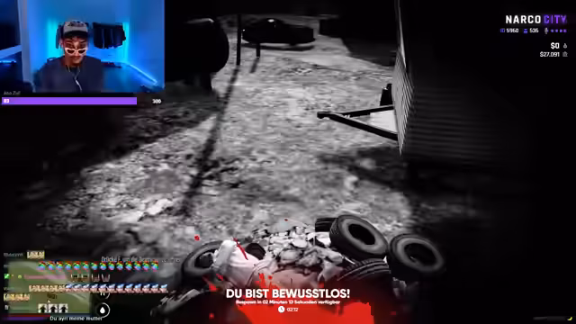 03:34:01Nachdem ein Fahrzeug gestohlen wurde, gerät der Streamer in eine prekäre Lage, da er sich im Auto festgefühlt hat und nicht aussteigen kann. Mit panischen und teilweise vulgären Appellen an den Chat und an virtuelle Helfer versucht er, sich zu befreien. Er fordert Zuschauer auf, ihn mit dem Wagen wegstoßen zu helfen oder auf den Fahrer schießen zu lassen, da er weder den Motor starten noch die Tür öffnen kann.