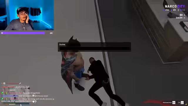 03:26:30Der Streamer befindet sich im Zuge eines Rollenspiels in einer turbulenten Situation. Er beschreibt den Diebstahl eines Autos und anschließend eine Konfrontation, bei der er einen Schlag ins Gesicht erhalten hat. Aufgrund einer früheren Ablehnung durch eine Dame mit lilanen Haaren, die ihn nicht in eine Einrichtung ließ, beginnt er eine Jagd auf diese Person, die er als kleine Bitch bezeichnet.