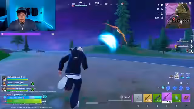 01:22:02Der Stream startet mit intensiven Fortnite-Duo-Spielen. Der Streamer und sein Team kämpfen gegen Gegner, wobei er häufig in hitzige Situationen gerät, in denen er ums Überleben kämpft und auf Teammitglieder wie Sam und Melissa angewiesen ist. Es kommt zu verbalem Austausch und Frustration über das Spielverhalten der Mitspieler, insbesondere über blockierende Spieler und mangelnde Taktik. Der Fokus liegt auf dem Erreichen von Siegen in 2-gegen-2-Situationen.