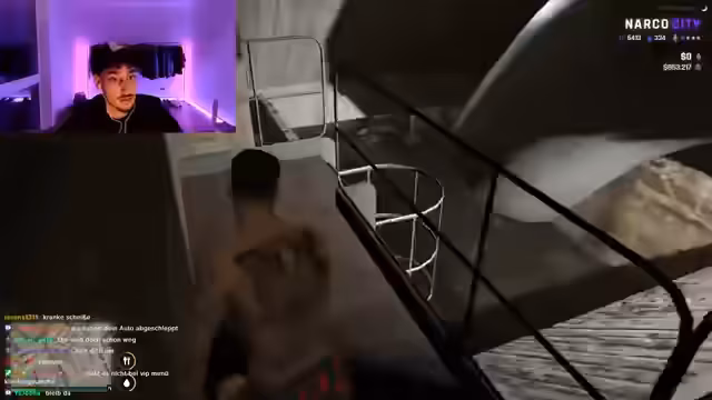 04:18:33Nach der intensiven Flucht fühlt sich der Streamer desorientiert und tritt aus dem Spiel aus, um im Twitch-Chat nach Ratschlägen zu suchen. Er beschreibt seine Lage, dass er die Polizei verloren zu haben glaubt, aber gleichzeitig von deren fortwährender Anwesenheit spricht. Der Streamer wirkt verwirrt und zitiert den Chat, der ihm offenbar widersprüchliche Informationen gibt. Er berichtet von der helikopterbasierten Verfolgung und seiner aktuellen Position und verunsichert so seine Zuschauer, die versuchen, ihm zu helfen, die Situation zu verstehen.