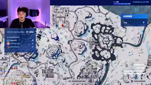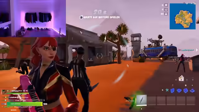 00:15:41Während des Spiels sucht der Streamer aktiv nach Kooperationsmöglichkeiten, indem er nach einem bestimmten Mitspieler sucht, der angeblich ebenfalls live gehen sollte. Es kommt zu technischen Schwierigkeiten, da der Streamer den Chat nicht sehen kann, was die Kommunikation erschwert. Dennoch wird die Runde fortgesetzt, wobei er und seine Mitspieler versuchen, sich zu koordinieren, Loot zu sammeln und Gegner zu bekämpfen, während der Streamer auf die Ankunft des Mitspielers wartet.