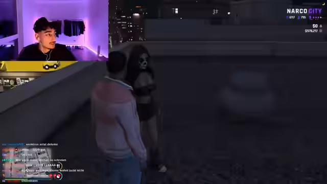 00:32:26Der Streamer interagiert intensiv mit dem Chat, unterhält sich über verschiedene Themen wie Geburtstagsgeschenke und gemeinsame Skins. Als ein weiterer Streamer im Chat erwähnt wird, wechselt der Streamer das Spiel zu Grand Theft Auto, um zu vermeiden, dass er ungewollt in das Spiel des anderen Streamers gestört wird. Die Entscheidung wird getroffen, um eine ungestörte Spielrunde zu gewährleisten und die Community zu integrieren.