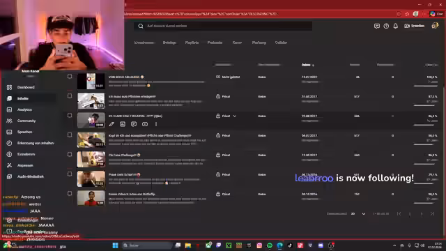 00:01:15Zu Beginn des Streams äußert der Streamer erhebliche Bedenken und bezeichnet das Anschauen seiner alten YouTube-Videos als seinen Untergang. Nach dem Start auf Twitch treten technische Probleme auf. Die Followerzahl wird mit fast 14.000 angezeigt, doch der Streamer kann die Benachrichtigungen für neue Follower und Subs nicht sehen, was zu Verwirrung und Frustration führt. Er muss seinen Kopfhörer suchen und den Stream starten, während er sich selbst für nervös hält und die Chatmitglieder fragt, ob sie ihn hören können.