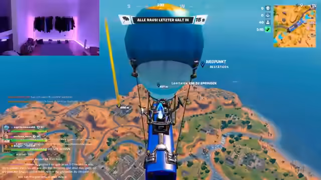 01:36:54Aufgrund von Erschöpfung wird über den weiteren Verlauf des Streams diskutiert. Es wird erwogen, statt Fortnite auf GTA umzuschalten oder den Stream früher zu beenden. Die Müdigkeit wird mit unruhigem Schlaf wegen einer Alarmanlage begründet. Auch die Teilnahme von Sam ist ungewiss, da sie möglicherweise ein Date hat. Während der Wartezeit werden private Themen angesprochen, wie ein geplantes Solariumbesuch und die Freude an Salzgurken, was zu einem persönlichen und lockeren Gesprächsstil beiträgt.