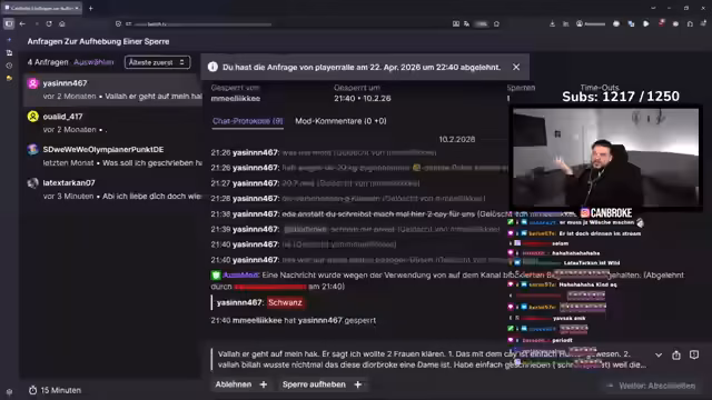 00:55:33Es wird über den Mod Exi gesprochen, der im Studio eingeschlafen ist, während er den Chat moderierte. Der Streamer zeigt Verständnis für die Situation. Anschließend werden verschiedene Ban-Anträge besprochen. Einige Ban-Anträge von 2018 werden als zu lange her betrachtet und die User erhalten eine zweite Chance. Bei anderen Anträgen werden die Gründe für den Bans diskutiert und entschieden, ob diese aufgehoben werden sollen oder nicht.