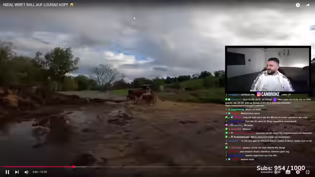 03:35:17Die Streamerin gesteht, aus Versehen Nidals Fahrrad kaputt gemacht zu haben, und fährt an einem Fahrradladen vorbei. Sie scherzt darüber, dass Nidal trotz eines Anrufs im Laden weiterhin mit dem kaputten Fahrrad fahren wird. Anschließend kehren sie nach Hause zurück, um Nidal live im Fernsehen bei seinem Auswärtsspiel zu verfolgen. Die Kinder zeigen stolz ihr Trikot und es wird gescherzt, dass sie es kaum erwarten können, das Spiel zu sehen. Sie fahren irgendwohin, wo sie nicht hinfahren sollten. Es wird kurz überlegt, ob noch Freunde dazukommen sollen, um gemeinsam FIFA zu spielen. Die Streamerin neckt Berke, der mit dem Sitz gespielt hat und lädt Enzar und Toysi ein. Sie fahren weiter und die Streamerin wundert sich, warum Kinder so schnell Tiergeräusche lernen, aber Schwierigkeiten mit einfachen Wörtern haben.