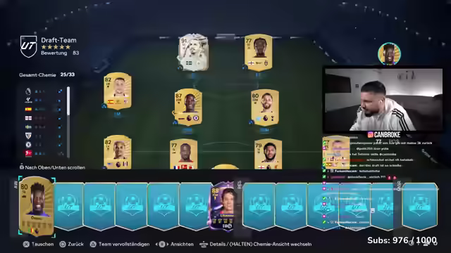 06:52:17Es wird über die hohen Kosten gesprochen, die nötig sind, um in FIFA ein gutes Team zu haben. Der Streamer zieht erneut eine schlechte Karte und äußert seinen Frust darüber. Es wird kurz erwähnt, dass ein Mod einen MVP gezogen und für 4,8 Millionen verkauft hat. Der Streamer verliert ein Spiel und hat keine Points mehr, um weiterzuspielen. Stattdessen wird überlegt, eine Runde Draft zu spielen, aber es gibt Schwierigkeiten, den Draft-Modus im Spiel zu finden, da kein Plus-Abonnement vorhanden ist. Der Draft-Modus wird als frustrierend empfunden, da die Auswahl an Spielern schlecht ist und keine Skill-Moves möglich sind. Es wird der hässlichste Draft aller Zeiten konstatiert. Es wird überlegt, welche Spieler man nehmen soll, und verschiedene Vorschläge aus dem Chat werden diskutiert. Letztendlich wird ein Team zusammengestellt, aber die Erwartungen sind niedrig.