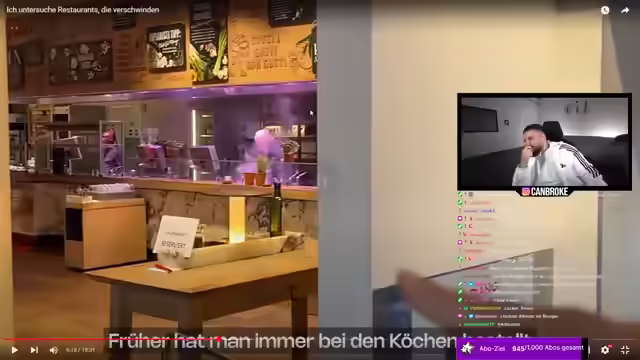 01:55:33Der Besuch in einem Restaurant wird als enttäuschend beschrieben. Die Atmosphäre wird mit billigen Hotels in der Türkei verglichen, und die Präsentation des Essens, insbesondere der Salatbar und des Kartoffelsalats, wird als traurig empfunden. Obwohl der Kellner freundlich ist, überwiegt der negative Eindruck des Ambientes. Das bestellte Rumpsteak kommt zwar schnell, aber die allgemeine Erfahrung rechtfertigt den Preis von 120 Euro nicht. Es wird angemerkt, dass die Qualität des Fleisches nicht mit Konkurrenten mithalten kann und das Konzept des Restaurants veraltet wirkt. Trotz des Respekts vor der Arbeit des Kellners wird die Kritik an dem Laden deutlich geäußert, wobei der Fokus auf der fehlenden Kreativität und dem unbefriedigenden Gesamterlebnis liegt. Es wird betont, dass die Zeit wertvoll ist und man sein Geld lieber in ein ansprechenderes Ambiente investieren würde. Der Laden macht einen Umsatz von 300 Euro am Tag und die wenigen Gäste sind ein Indiz für die Probleme.