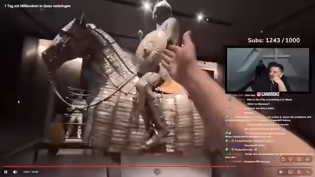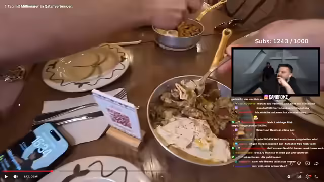 01:20:02Der Streamer wechselt das Thema und berichtet von seiner Reise nach Thailand. Er zeigt Aufnahmen seines Trainings in einem Fitnessstudio in Katar und seinen Plänen für gesunde Ernährung in Thailand. Der Vlog zeigt Ausschnitte aus einem luxuriösen Restaurant, einer Moschee und dem beeindruckenden Stadtbild von Katar. Dabei kritisiert er das deutsche Wetter und drückt seine Vorliebe für warmes Klima aus. Der Eindruck des reichen und entspannten Lebens in Katar soll den Zuschauern eine Flucht aus dem Alltag bieten.