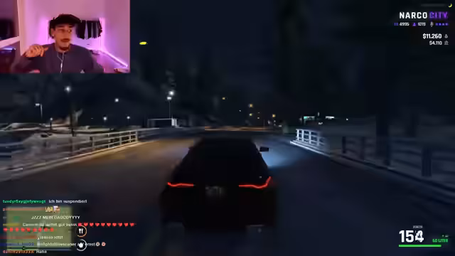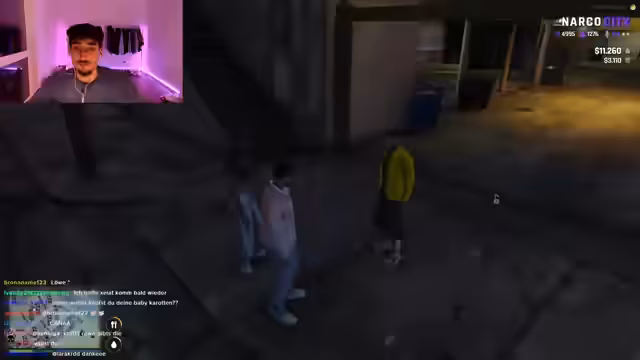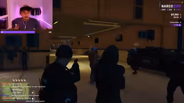 00:37:21Nach einer Runde Fortnite wechselt der Streamer endgültig zum Hauptziel des Abends, dem GTA Roleplay. Mit der neuen Mitspielerin Melissa betritt der Server 'Narcosity'. Die Charaktere werden eingeführt, eine militärische Ausrüstung ist vorhanden und das Ziel ist es, Geld zu verdienen. Die beiden erkunden die Stadt, treffen NPCs und nehmen erste Aufträge an, die darauf abzielen, Einnahmen zu generieren, um finanziell Fuß zu fassen.