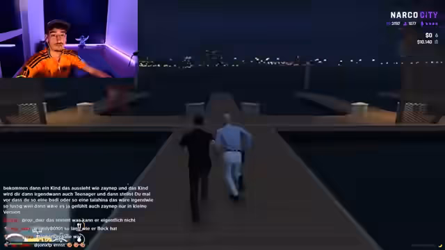 02:57:33Der Stream beginnt mit der Ankunft der Figur in einer urbanen Umgebung, die als geisteskrank und heftig beschrieben wird. Es gibt Erwähnungen von Nachbarn, die Geräusche machen, und einer spontanen Auseinandersetzung. Die erste signifikante Interaktion findet im Resort statt, wo die Figur mit einem Manager oder Hotelangestellten konfrontiert wird und aufgefordert wird, eine Maske abzunehmen. Die Szene ist geprägt von chaotischem Verhalten und einer übertriebenen Professionalität der Figur, die sich wie ein Manager ausgibt. Parallel dazu gibt es erste Begegnungen mit anderen Charakteren, darunter ein 'Taxifahrer' und eine Person namens Ferdinand, die auf ein Motorrad Bezug nimmt und 'Pendejo' genannt wird.