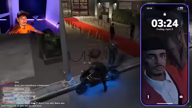 02:44:43Die narrative des 'Resorts' wird fortgesetzt, als der Streamer und seine Begleiter eine nächtliche 'Anti-Cringe-Patrouille' durch das Gelände unternehmen. Sie beobachten verschiedene Gäste, die als seltsam oder 'cringy' empfunden werden. Dabei wird ein weiteres Bungalow-Paar beim 'Bumsen' entdeckt, was eine weitere hektische Interaktion und den Einsatz von Polizisten nach sich zieht.