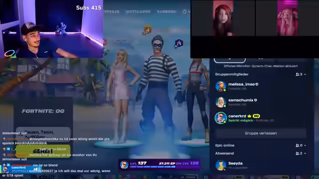 00:10:50Während des Streams werden Geburtstagsgrüße ausgetauscht und die Streamer erwähnen seinen Geburtstag. Sie straffen weiterhin Fortnite mit Melissa, bei der sie um Lootkämpfe kämpfen und versuchen, sich gegen Gegner zu verteidigen. Es gibt Diskussionen über Loot, die Spielstrategie und die Kombination der Waffen, um im Spiel voranzukommen.