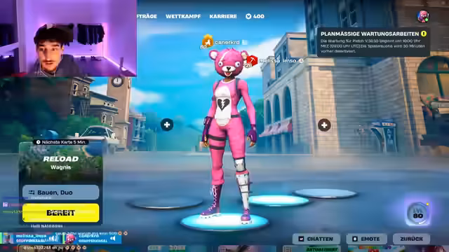 00:02:18Nach den technischen Vorbereitungen beginnt der Streamer mit dem Durchsehen des Fortnite-Shops zusammen mit einem Mitspieler namens Melissa. Die beiden planen, einen Skin zu kaufen, der sowohl für männliche als auch für weibliche Charaktere verfügbar ist. Durch den Chat werden verschiedene Skins wie ein Panda, Vogel-Skins und Ski-Outfits vorgeschlagen, aber nach sorgfältiger Überlegung entscheidet sich das Duo, keinen Skin zu kaufen und stattdessen auf bessere Angebote zu warten, da der aktuelle Shop als wenig ansprechend bewertet wird.