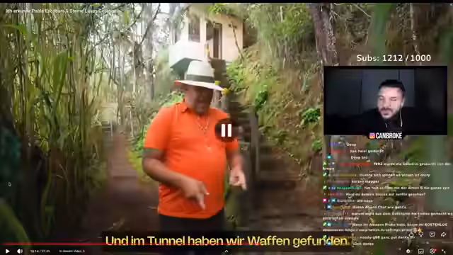 02:19:19Im Stream wird ausführlich über die Flucht von Pablo Escobar nach seiner Flucht aus dem Gefängnis La Catedral berichtet. Er versteckte sich für drei Monate im Dschungel, ständig auf der Flucht, und vertraute nur noch seinem Leibwächter Alfonso 'Limón'. Die Jagd auf Escobar wurde von einer enormen Koalition aus Polizei, Armee, Regierung der USA und Kolumbiens sowie diversen kriminellen Gruppen, darunter den rivalisierenden Kartellen und der paramilitärischen Gruppe 'Los Pepes', betrieben.