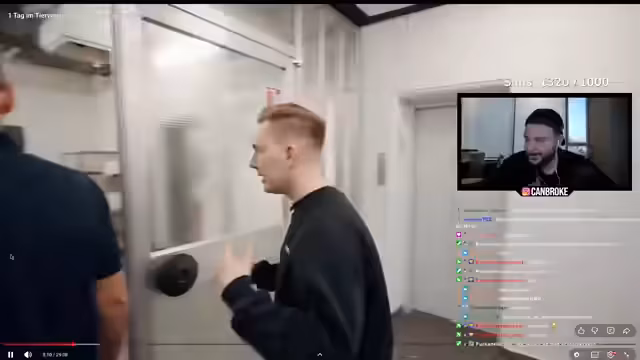 00:55:15Der Stream wechselt zu einem Unterhaltungssegment, in dem der Streamer und sein Gast auf verschiedene virale Clips reagieren. Die Videos sind von sehr unterschiedlicher Natur und reichen von humorvollen Unfällen über schockierende bis anstößige Inhalte. Während des Streams werden die Zuschauer aufgefordert, nicht laut zu lachen, da im Haus geschlafen wird. Die Reaktionen reichen von Amüsement über Abscheu bis hin zu Frustration über den Inhalt mancher Clips, insbesondere über gewalttätige oder vulgäre Darstellungen. Dieses Segment dient als Ablenkung und zeigt die Dynamik zwischen Streamer und Publikum.
