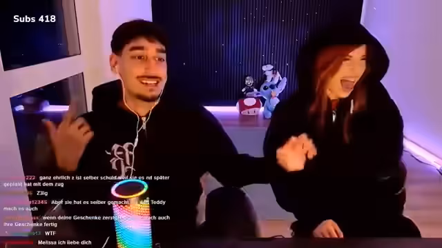 00:10:15Der Streamer und Melissa führen eine Piñata-Aktion durch, bei der Melissa mit verbundenen Augen versucht, die Piñata zu treffen. Der Streamer begleitet den Vorgang mit Kommentaren und Musik, während das Publikum per Chat reagiert. Nach der erfolgreichen Piñata-Aktion essen sie Süßigkeiten und bereiten sich auf die nächsten Aktivitäten vor.