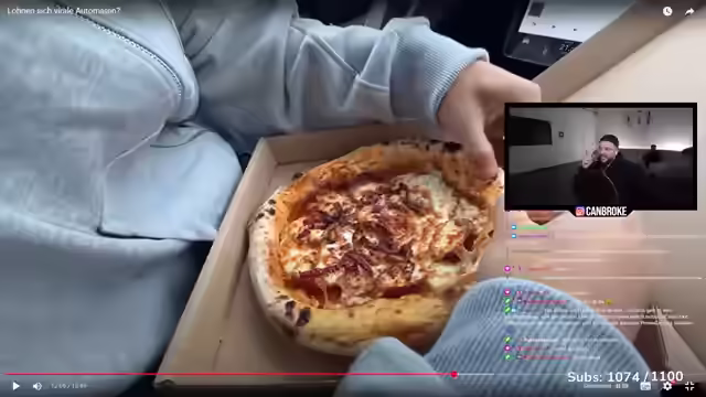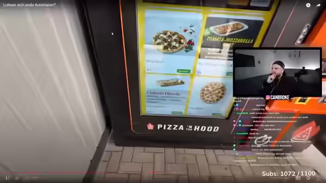 01:06:16Es wird die Pizza aus dem Automaten probiert und festgestellt, dass wenig Tomatensauce vorhanden ist. Trotzdem wird sie als besser als Tankstellenfraß und Brötchen bewertet. Es wird betont, dass es sich um eine warme Teigware mit Thunfisch handelt, die eine gute Alternative darstellt. Es wird die Meinung vertreten, dass es besser ist als die Pizza von McDonald's. Es wird die Zielgruppe der Kanacken angesprochen, die nachts bei McDonald's oder am Rockwoolplatz chillen und nun eine Pizza als Alternative haben. Es wird die Idee gelobt, dass die Leute nun eine Wahl haben und McDonald's boykottieren können. Es wird die Möglichkeit erwähnt, den Preis selbst zu bestimmen und die Pizza zu einem bestimmten Preis anzubieten. Es wird die Notwendigkeit einer Person betont, die sich um den Automaten kümmert. Es wird die Idee geboren, nach jedem Stream eine Pizza aus dem Automaten zu holen und dies in einer Story zu teilen.