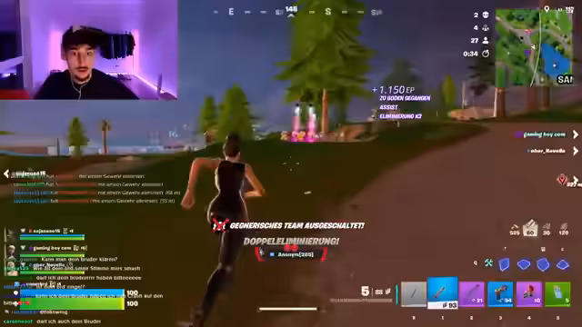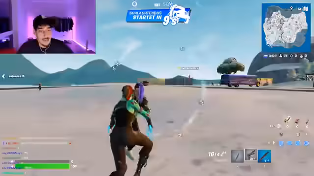00:07:11Nach einem kurzen Plausch im Chat bittet der Streamer seinen jüngeren Bruder und seinen Cousin zum gemeinsamen Spielen. Während er auf die Ankunft von Melissa und Sam wartet, die noch ein Fortnite-Update durchführen, startet er ein privates Spiel zu dritt. Er interagiert intensiv mit den beiden, fordert sie auf, lauter zu sein und gibt ihnen Anweisungen, die sie jedoch teilweise nicht befolgen. Die Situation ist geprägt von viel Kommunikation und einem leichten Chaos, verursacht durch die fehlende Erfahrung der Mitspieler und technische Einstellungen.