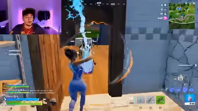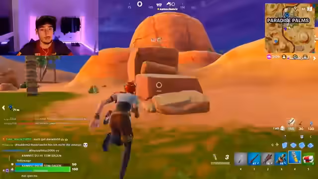00:23:18Der Streamer und sein Team, bestehend aus Sam und anderen, koordinieren sich während des Spiels, um Gegner zu bekämpfen und Loot zu sammeln. Er gibt klare Anweisungen, wie zum Beispiel in einem bestimmten Gebäude zu landen, einen verletzten Teamkameraden zu heilen oder sich hinter Objekten zu verstecken, um不被 zu snipen. Die Kommunikation ist geprägt von Eile und Dringlichkeit, da das Team oft von Gegner angegriffen wird und schnell handeln muss.