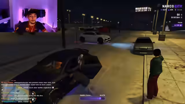 04:13:20Es kommt zu einem lautstarken Streit mit provokativen Kommentaren, bei dem der Streamer mit Schlägen und Bedrohungen konfrontiert wird. Er versucht, die Situation zu beruhigen, wird jedoch beschuldigt, sich aggressiv zu verhalten. Es geht um eine vermeintliche Gang-Affinität und Vorwürfe, wie der Streamer behandelt wird. Die Situation eskaliert, und der Streamer fordert Respekt und das Zurückfahren von Wörtern. Der Grund für die Aggression ist unklar.