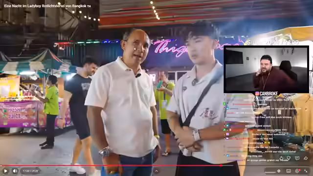 01:33:21Ein prägender Moment des Streams ist der Besuch einer berühmten Ping-Pong-Show in Bangkok. Der Streamer, begleitet von Mr. Pong, dokumentiert diesen Ausflug für seine Zuschauer. Die Show wird als unterhaltsam, aber gleichzeitig verstörend beschrieben. Nach dem Erlebnis setzt sich der Streamer kritisch mit dem Inhalt auseinander. Er reflektiert die Kluft zwischen der Show als Unterhaltung und der Realität, dass viele Frauen dort arbeiten, um ihre Familien zu ernähren, und oftmals keine andere Wahl haben.