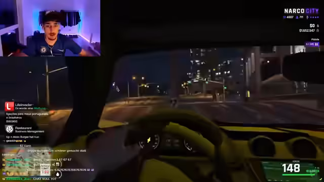 03:03:55Der Streamer beschäftigt sich intensiv mit dem Kauf und dem Umbau von Fahrzeugen in einem Spiel, das dem Tuning von Autos ähnelt. Er äußert den Wunsch, ein bestimmtes Modell zu erwerben, und diskutiert die Kosten mit dem Chat. Parallel dazu wird die ständige Präsenz von Polizeieinheiten thematisiert, die zu ständigen Konfrontationen und Verfolgungsjagden führen und den Spielfluss bestimmen.