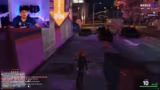 03:28:23Der Streamer gerät in eine szenenhafte Polizeikontrolle, die in ein Verhör mündet. Die Situation eskaliert, als die Polizei die Verhaftung eines anderen Spielers durchsetzt. Dies führt zu einem chaotischen Fluchtversuch mit dem Ziel, dem fiktiven Gefängnis zu entkommen. Dabei werden verschiedene Taktiken wie das Anziehen von Tauchanzügen und das Verstecken angewendet.