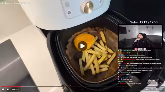 02:24:09Der Streamer testet verschiedene Snacks aus dem TikTok-Shop, wie gefriergetrocknete Erdbeeren, KFC-Hot-Chicken-Gebäck und Halal-Süßigkeiten. Er kommt zu dem Schluss, dass einige Snacks wie die gefriergetrocknete Erdbeeren kalorienreich sein können, aber dennoch als Genussmittel zu genießen sind. Andere Produkte wie die Halal-Süßigkeiten bietet eine breite Auswahl an Geschmäckern und sind besonders für bestimmte Zielgruppen geeignet.