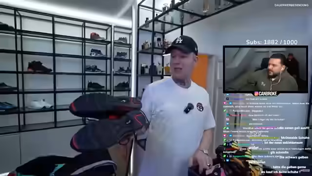01:05:25Der Streamer reagiert auf ein Video von Montana Black, der seinen Schrank aussortiert. Man sieht viele ungetragene und seltene Schuhe, darunter einige Louis-Vuitton-Modelle, die er nicht für 10.000 Euro verkaufen würde, da sie ihm emotionalen Wert haben. Er stellt fest, dass er früher ein Fanboy war und viele Schuhe nachgekauft hat. Am Ende des Streams werden mehrere Paar Schuhe, darunter Jordans und Valentinos, an die Zuschauer verlost. Montana reflektiert über seinen früheren Konsum und bezeichnet sich selbst als 'Konsumopfer'.