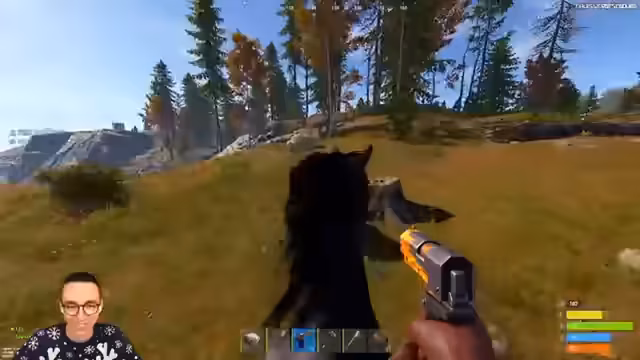 02:33:03Der Stream konzentriert sich auf das Errichten einer Holzkohleschmelzerei (Charcoal). Ein auffälliger Bug wird bemerkt, bei dem ein Pferd in der Luft schwebt und langsam nach unten gleitet, statt auf dem Boden zu stehen. Parallel dazu wird die Funktionalität normaler Öfen getestet und festgestellt, dass diese manuell mit Holz befüllt werden können. Der Spieler sammelt Ressourcen wie Holz und sucht nach Gegenständen wie einer Speargun, um seine Basis weiter auszubauen und vorzubereiten.