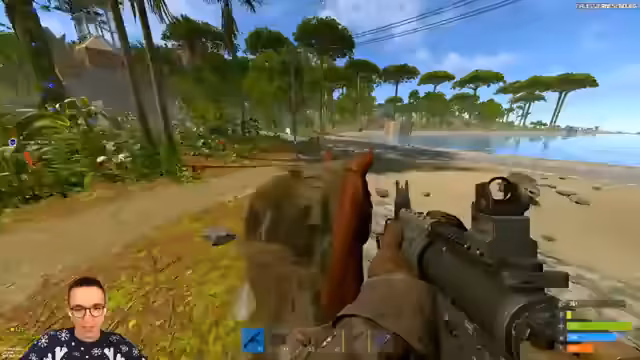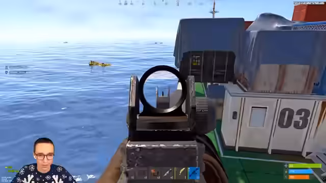 03:59:45Aufgrund der geschwächten Situation entscheidet der Streamer, die Holzfarm aufzuschieben und stattdessen eine Ölbohrinsicht zu plündern. Die Planung ist hektisch, da die Dunkelheit einsetzt und kein Taschenlampen-Loot vorhanden ist. Die Strategie beinhaltet, mit einem Rock und ohne Equipment zur Holzfarm zu schwimmen. Besonderen Fokus legt der Streamer auf die Wahl der richtigen Waffe, wobei er sich für eine MP5 entscheidet, um den Nahkampf zu meistern, und möglicherweise einen Bogen mitnimmt, um Boote zu bekämpfen.