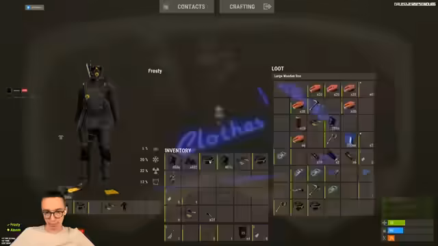 06:18:58Nach langem und intensivem Suchen gelingt es den Spielern endlich, das benötigte Fragment zu finden und die Workbench 2 zu erhalten. Die Freude ist groß, und es wird beschlossen, sofort zur Basis zurückzukehren. Die Basis wird neu organisiert, um die neuen Möglichkeiten der Workbench 2 optimal zu nutzen. Es werden spezielle Kisten für Komponenten, Ressourcen, Kleidung, Waffen und Werkzeuge eingerichtet. Die Tauchausrüstung wird ebenfalls sortiert und verstaut. Die Spieler stellen fest, dass sie über eine gute Ausstattung verfügen, insbesondere im Bereich der Tauchausrüstung. Die Basis wird als „cleaned as fuck“ bezeichnet, und es wird überlegt, Elektrozäune und Solarpaneele zu craften, um die Sicherheit weiter zu erhöhen. Die erfolgreiche Beschaffung der Workbench 2 nach viereinhalb Stunden Spielzeit wird als großer Erfolg gewertet, der nun die Herstellung besserer Waffen ermöglicht und den Weg für Red Card Runs ebnet.
