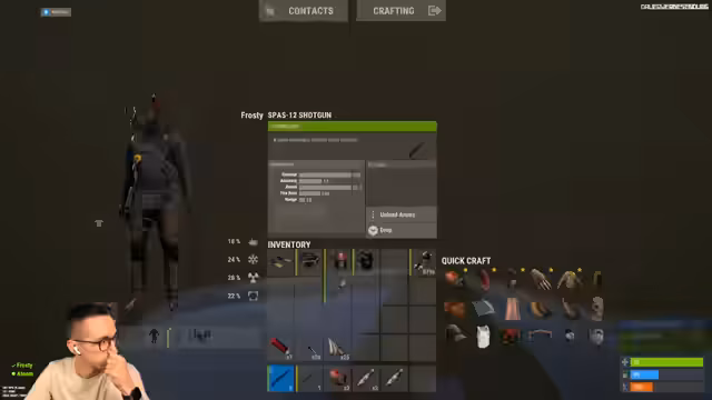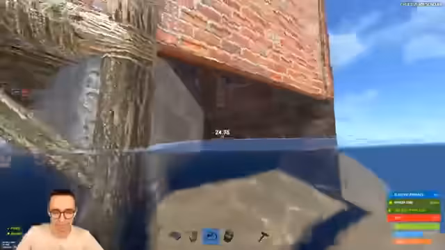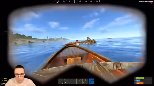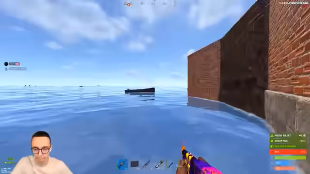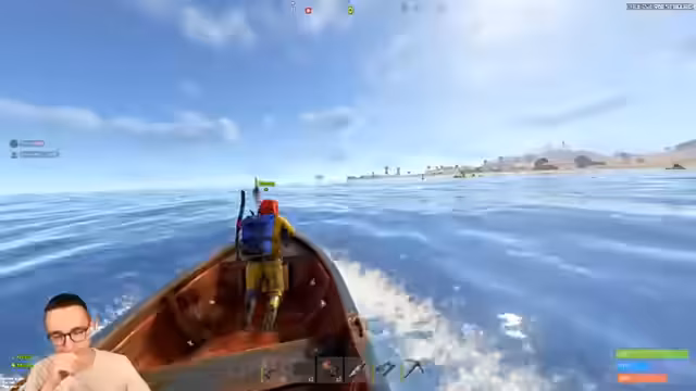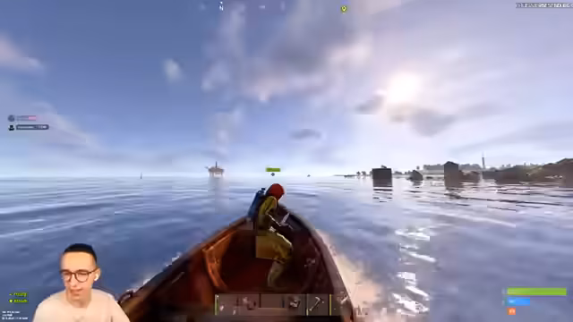 04:11:43Nach einem Disconnect und dem Verlust ihrer Ausrüstung finden sich die Streamer wieder in ihrer Basis. Ein Boot erscheint in der Nähe ihrer Basis. Sie sind frustriert über die schlechte Spielmechanik und die Schwierigkeiten, Fortschritt zu erzielen. Ein Spieler wird erneut von einem Gegner mit Speargun angegriffen. Der Gegner wird besiegt, und es wird festgestellt, dass er mehrere Spearguns bei sich hatte. Es wird vermutet, dass es sich um denselben Nachbarn handelt. Die Streamer sind überrascht, wie sie den Gegner besiegen konnten, obwohl sie selbst kaum Ausrüstung hatten. Sie planen, sich zu heilen und die 'Large Oil Rig' erneut anzugreifen.