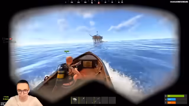 04:05:13Die Streamer planen einen Angriff auf die 'Large Oil Rig'. Sie vermuten, dass sich bereits jemand dort befindet. Ein Spieler wird von einem Gegner mit einer M4-Shotgun 'one-shot' getötet und verliert seine Speargun. Es wird vermutet, dass die Angreifer mit einem Heißluftballon gekommen sind. Die Streamer versuchen, ihr eigenes Boot zu zerstören, um zu verhindern, dass es von den Gegnern benutzt wird. Der tote Spieler wird nicht gelootet, da der Gegner bereits alles mitgenommen hat. Die Streamer sind frustriert über den schnellen Verlust ihrer Ausrüstung und die scheinbar unfaire Spielmechanik der Scientists, die instant 50 Schaden verursachen.