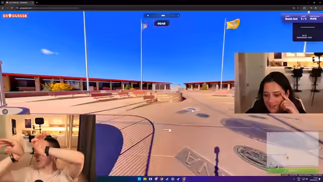 02:21:39Nach langer Wartezeit und technischen Schwierigkeiten beim Download und der Übertragung des PUBG-Spiels via Steam starteten eine gemeinsames Duell. Die Runde wurde mit Geo-Guessr als Alternative verbracht, wo die Teilnehmer versuchten, Länder anhand von Hinweisen wie Verkehrslage, Schriftzeichen und Flaggen zu erraten.