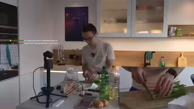 00:00:00Der Stream beginnt mit einer herzlichen Begrüßung und der Vorstellung der heutigen Aufgabe: Aus vorhandenen Zutaten, eventuell mit Hilfe des Chats und Rosenn, ein Gericht zu zaubern. Es wird betont, dass die Zutaten für eine Portion gedacht sind, wobei die Größe der Portion noch festgelegt wird. Ein kurzer Mic-Check soll sicherstellen, dass sowohl der Streamer als auch Rosenn gut zu hören sind, auch wenn sie sich voneinander entfernen. Nach anfänglichen Schwierigkeiten mit der Lautstärke und dem Klang der Mikrofone, die anscheinend durch die Nähe der beiden Personen zueinander verursacht wurden, wird beschlossen, sich räumlich zu trennen, um die Audioqualität zu verbessern. Die Zutaten, hauptsächlich von Rewe, werden präsentiert, darunter Champignons, Lauchzwiebeln, Möhren, Zwiebeln, Essig, Zucchini, Agavendicksaft, Sojasauce, Sesamöl und Chiliflocken. Es wird betont, dass das Gericht vegetarisch ist, um im Falle eines Misserfolgs kein Fleisch verschwenden zu müssen. Der Chat wird aufgefordert, mitzuraten, aber nicht zu spoilern, indem er ChatGPT oder ähnliche Tools verwendet.