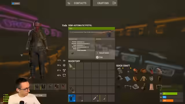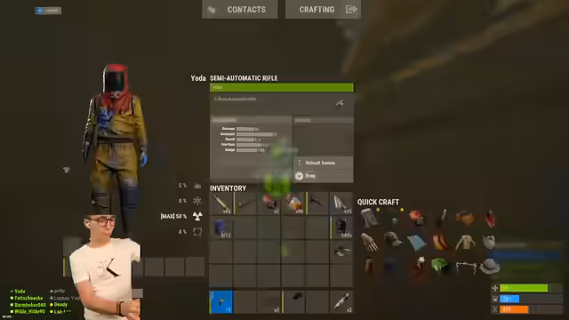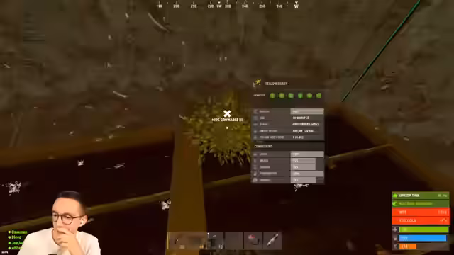 11:12:38Die Streamer-Farmbase wurde von einer Gruppe russischsprachiger Spieler überfallen. Diese nutzten AK-Waffen und versuchten, von oben über das Dach einzudringen. Die Bewohner reagierten, indem sie die Eindringlinge einkesselten und ihnen den Zugriff auf den Rest der Base erschwerten, indem sie eine weitere Tür blockierten. Eine Spielerin, die außerhalb des Teams (out-of-team) in die Base lief, wurde als freundlich eingestuft und eingelassen. Die Situation blieb angespannt, da die Angreifer weiterhin Raketen und C4 gegen die Verteidiger einsetzten.