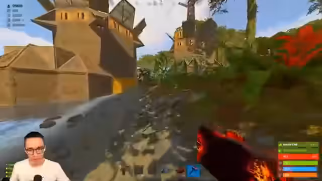 09:56:01Der Fokus des Streams liegt auf dem Bau einer großen Schutzmauer (Wall) für die Community Village. Ein Diskussion entsteht über die strategische Platzierung von Metallbarrikaden und Toren, um die Basis sicherer zu machen. Gleichzeitig erkunden die Spieler die umliegende Gegend, insbesondere einen tiefen, als „Marianngraben“ bezeichneten Bereich, und testen, ob man mit einem Boot sicher darüber navigieren kann. Auch die Funktionalität einer selbstgebauten Bootsgarage wird getestet und als gelungen angesehen.