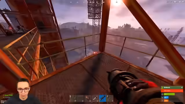06:12:25Der Streamer erinnert sich an erfolgreiche Raids gegen Spieler, die mit Rockets flexten, und betont deren hohe Bereitschaft und Spielstärke. Er scoutet nun die Pyramide nach einer Zielperson, deren Basis er kennt, und analysiert deren Aufbau, bemängelt die fehlenden Turrets auf dem Dach und vermutet eine Single-TC-Struktur trotz sichtbarer Heavy Weapons. Er plant einen präzisen Raid über das Dach, um die Betten zu zerstören und die Verteidiger zu überraschen.