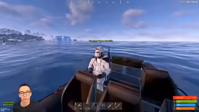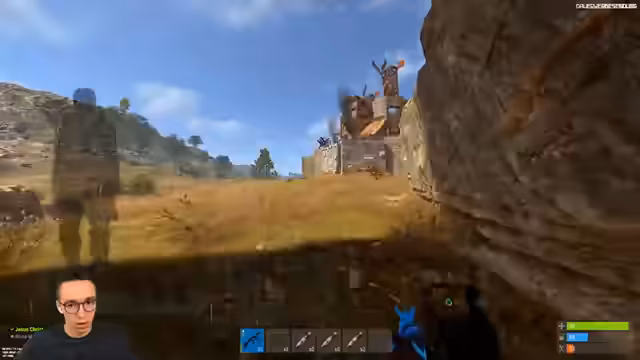 08:03:17Während des Baus kommt es zu ersten Scharmützeln mit gegnerischen Spielern. Es werden Späher entdeckt, einer davon nackt, der direkt an der Base eliminiert wird. Feinde werden identifiziert (z.B. LSD, XL) und es wird über strategische Optionen wie das Platzieren von Fallen, Raids mit Attack-Helikoptern und dem gezielten Einsatz von Raketen diskutiert.