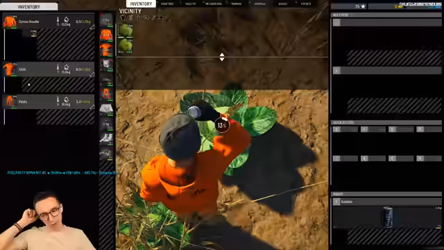 01:50:55Ein zentrales Thema ist die complexe Steuerung des Charakterzustands. Der Streamer isst Nüsse, Chips und trinkt Wasser, um seine Werte aufzufüllen und zu erhalten, wobei er sich über das Auf und Ab des Magens verwundert. Sein Gesamtgewicht von über 25 Kilogramm durch Rucksack und Waffen macht ihn langsam, was er als realistischen Survival-Aspekt ansieht. Die Diskussion um die dauerhafte Veränderung des Charakters durch Suizid und das Wiederherstellen von Intelligenz in Bunkern ist präsent, ebenso wie die Mechanik der Lagerung von Munition, die Haltbarkeit verliert, wenn sie verpackt bleibt.