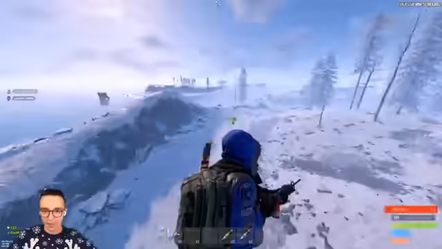 01:13:09Angesichts knapper Munitionsreserven (39 Schuss und 20 im Magazin) beschließen die Streamer, eine riskantere Taktik anzuwenden, um Munition zu sparen. Sie planen, von einer erhöhten Position abzuspringen, um Scientists aus nächster Nähe auszuschalten. Währenddessen wird ein Scientist beobachtet, der sich zurückzieht und dann wieder in Position geht. Die Streamer koordinieren ihre Angriffe, wobei ein Spieler die Aufmerksamkeit auf sich zieht und der andere von einer erhöhten Position angreift. Sie müssen sich gegen zwei Scientists verteidigen und gleichzeitig eine Tür bei 20 Grad offenhalten. Die Taktik des Anlockens und gezielten Kopfschusses wird wiederholt angewendet, um die Gegner effizient zu besiegen und Munition zu sparen. Trotz eines kurzen Lags gelingt es ihnen, weitere Scientists auszuschalten und wertvolle Beute wie eine Tommy Gun und Advanced Blueprint Fragments zu sichern.