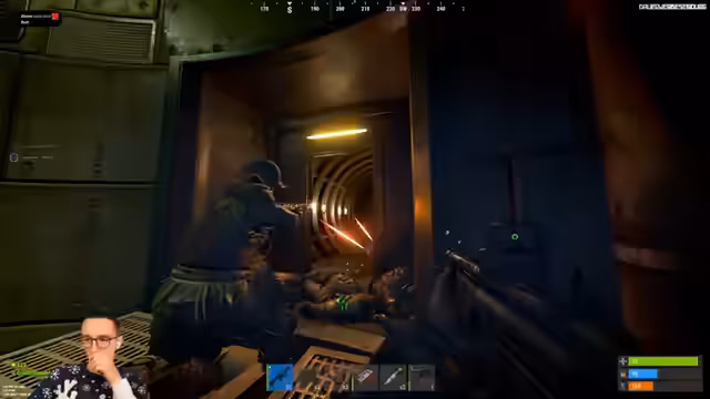 05:51:36Der Streamer spricht über die Open Beta von Arc Raiders und fragt sich, ob eine neue Season beginnt. Er ist gespannt, obwohl er selbst noch nichts darüber weiß. Ein Zuschauer merkt an, dass Arc Raiders mit 288.000 Spielern nicht als 'Hype-Over' bezeichnet werden kann, woraufhin der Streamer dies mit Rust vergleicht, das nach elf Jahren immer noch rund 280.000 Spieler hat. Es wird kurz über Ingame-Items in Rust gesprochen, insbesondere über die Effektivität verschiedener Helme und Rüstungsteile, wobei der Facemask mit 50% Schutz als besser als der Coffee Can Helmet mit 39% bei einem Insight eingestuft wird. Die Vorbereitungen für einen Raid laufen, Holz wird gesammelt und das Lufo brennt durch.