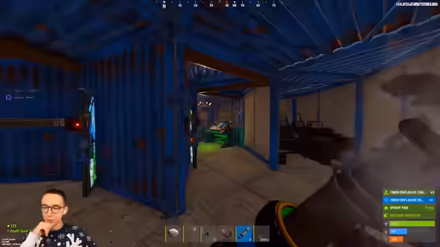 07:07:55Der Streamer plant einen Raid auf eine Basis von Gio und Mango. Er hat 120 Explosives und fast 3 Karagampart gesammelt. Er will zwei C4 gegen die Shell werfen, um zu sehen, ob sie in die Basis gelangen können. Er ist erleichtert, dass Gio und Mango offline sind, da er keinen Online-Raid machen wollte. Beim Erkunden der Basis stellt er fest, dass es sich um eine 2x1 Shellbase mit einer Armored Wall handelt, was ihn überrascht. Er vermutet, dass der Loot unten in den 'Peaks' der Basis sein wird und überlegt, wie er am besten vorgehen soll, um die Steinwände zu durchbrechen.