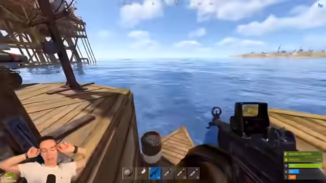05:17:27Ein weiterer Gegner, der unter dem Boot taucht, wird entdeckt. Die Streamer versuchen, ihn mit Spearguns zu treffen, während sie selbst durch ein leckendes Boot bedroht sind. Es kommt zu einem intensiven Schusswechsel, wobei der Gegner geschickt Deckung sucht. Die Lage eskaliert, als einer der Streamer beinahe im Wasser ertrinkt und der Gegner weiter unter dem Boot operiert.