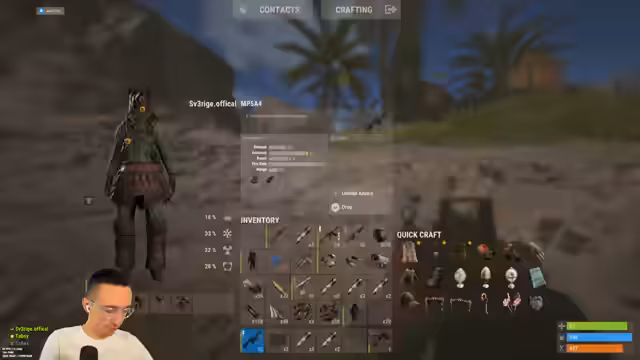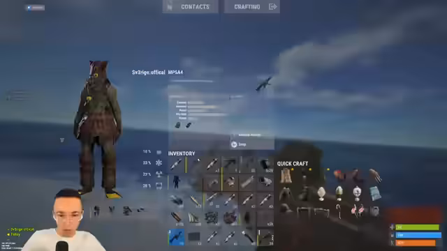 01:28:40Ein umgedrehtes Boot wird in der Nähe entdeckt, das Loot enthält. Der Streamer erkundet das Boot, findet eine MP5 und weitere Gegenstände. Er nimmt die Beute auf und plant, den Rucksack auszusetzen, da dieser voll ist. Das Umfeld und die umliegenden Boote werden beobachtet, mögliche Feinde oder Bot-Aktivitäten werden geprüft.