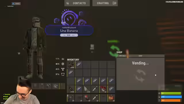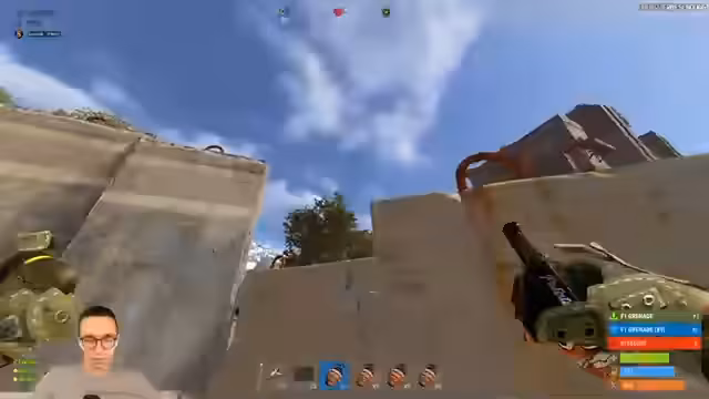 02:52:08Das Team plant einen koordinierten Angriff auf einen gesteckten Bradley-Panzer. Sie entscheiden sich, eine große Menge von Granaten mitzunehmen, da der Kauf einer großen Rocket zu teuer wäre. Nachdem sie genug Scrap zusammengetragen und die Granaten gecraftet haben, starten sie den Angriff. Der Panzer ist zwar festgefahren, was den Angriff vereinfacht, doch spawnen unerwartet gegnerische Scientists, die das Team überraschen und angreifen.
