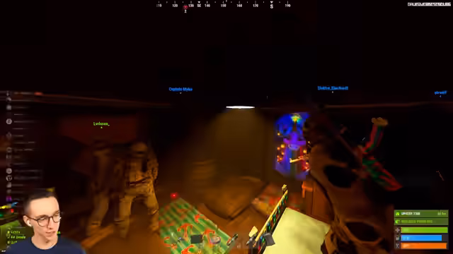 03:53:21Das Team sammelt Raketen und weitere Ausrüstung für einen geplanten Angriff auf das Airfield Building. Es werden Rocket Launcher und Metzen benötigt, wobei es zu Diskussionen über die Strahlenschutzkleidung kommt. Einige Spieler werden mit Strahlungsschutz ausgestattet, während andere ihre Ausrüstung für den bevorstehenden Einsatz anpassen und sicherte Positionen für den Angriff festlegen.
